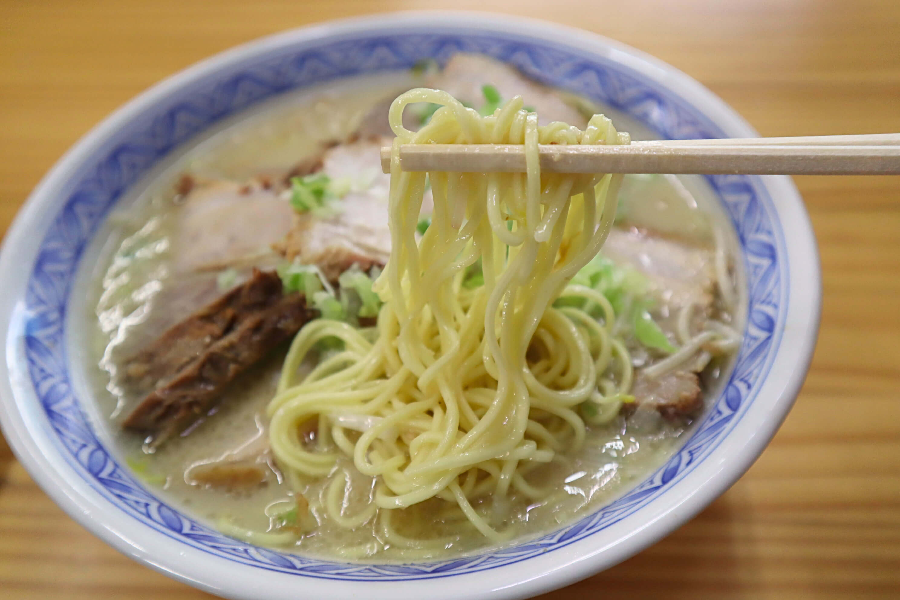 七福ラーメンのスープは、コクが深くすっきりとしたとんこつベースの味が特徴。豚のゲンコツを大釜で一週間じっくり炊き込むことで、しっかりと旨味を抽出しコクのある味わいを生み出します。ほのかに香るニンニクも、スープのアクセントに。大人から子どもまで幅広い世代に親しまれており、懐かしさを感じされる味わいです。