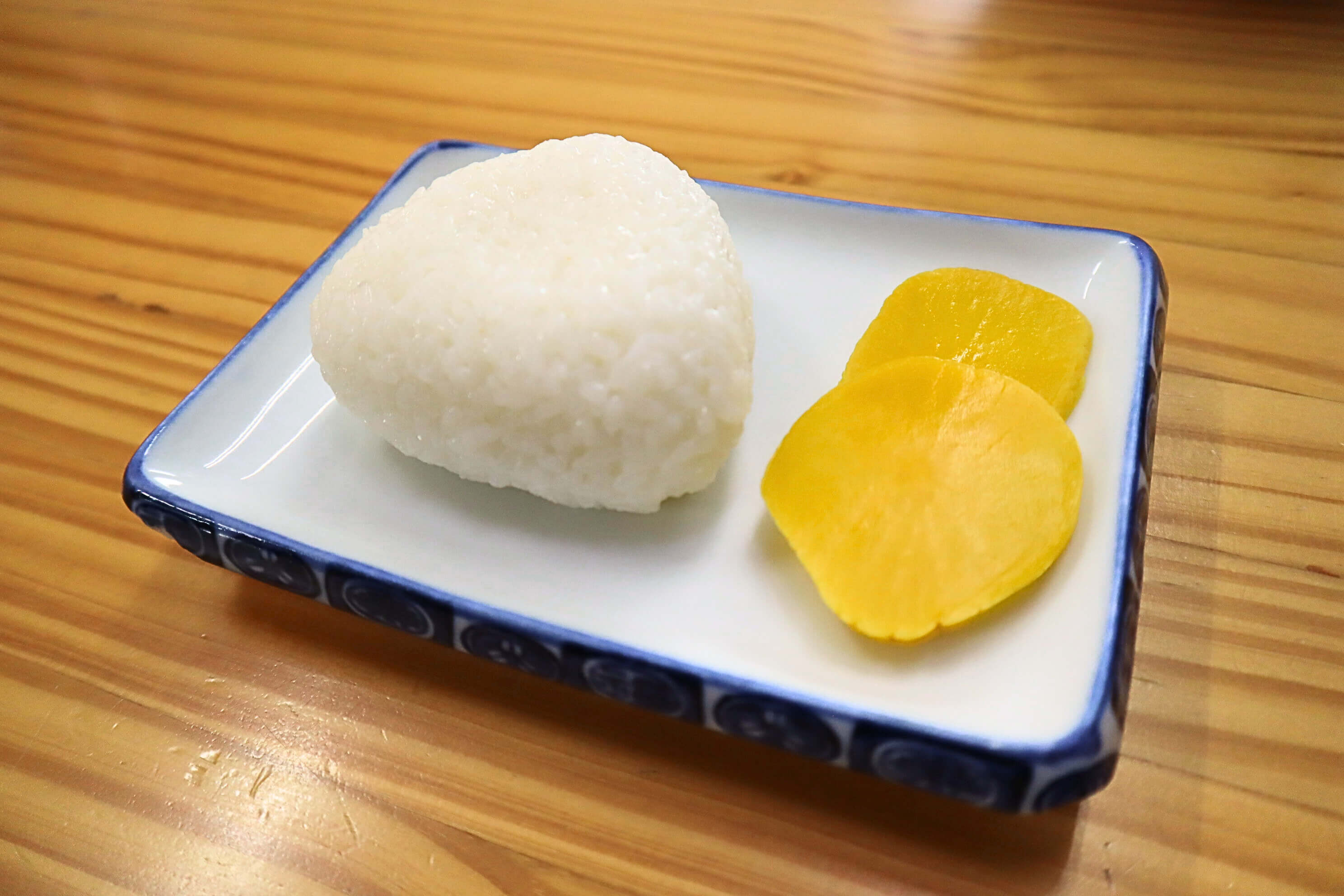 ラーメンと一緒にぜひ召し上がってもらいたいのが、おにぎり。注文を受けてから一つひとつ丁寧に握られたおにぎりは、手製ならではのふんわりとした仕上がり。「米の間に空気を入れるように握るのがコツ」で、ほどよい塩加減に食べていて思わず笑みがこぼれます。