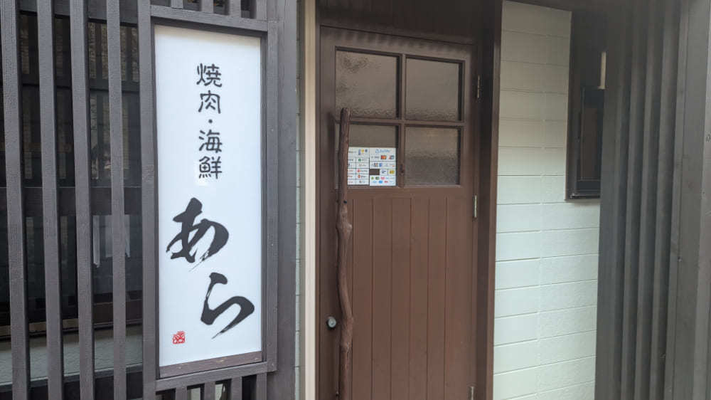 店名の焼肉・海鮮 あらは、店主の荒川さんが昔から呼ばれてきたあだ名に由来します。親しみのある呼び名をそのまま掲げることで、覚えていただきやすい店名にしました。