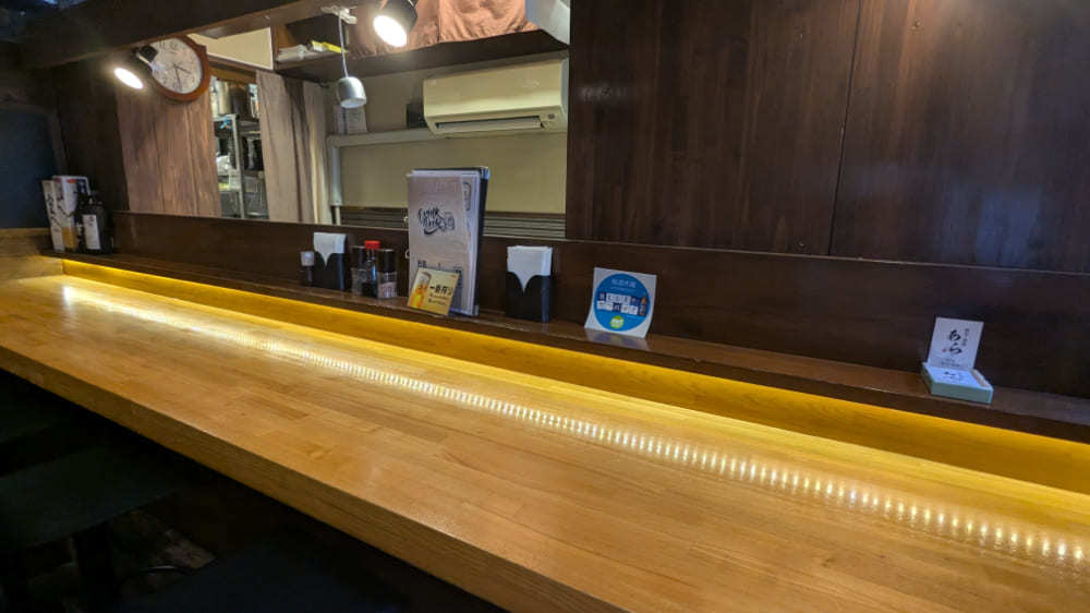 席は個室の掘りごたつとカウンターが完備されており、ご家族連れやお一人様でも気兼ねなく過ごせます。