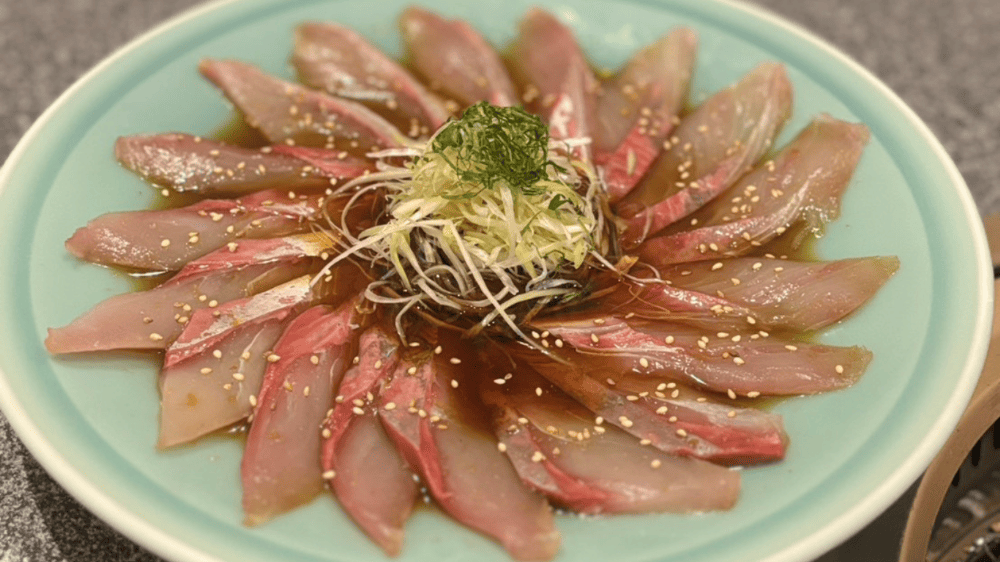 名物は魚の焼肉。ブリなど季節の魚を卓上で焼く体験は、鮮魚に強い店ならではの一皿です。刺身は元鮮魚店出身の店主が厳選し、その日の良いものを丁寧に仕立てます。