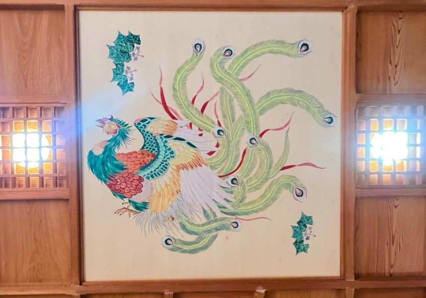 本堂に入って天井を見上げると、迫力のある龍や鳳凰などの天井画をご覧いただけます。