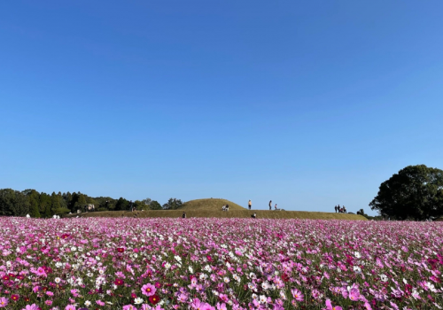 古墳群周辺は整備されており、春は桜と菜の花、夏はひまわり、秋はコスモスと季節ごとに咲く花も見ることができます。
